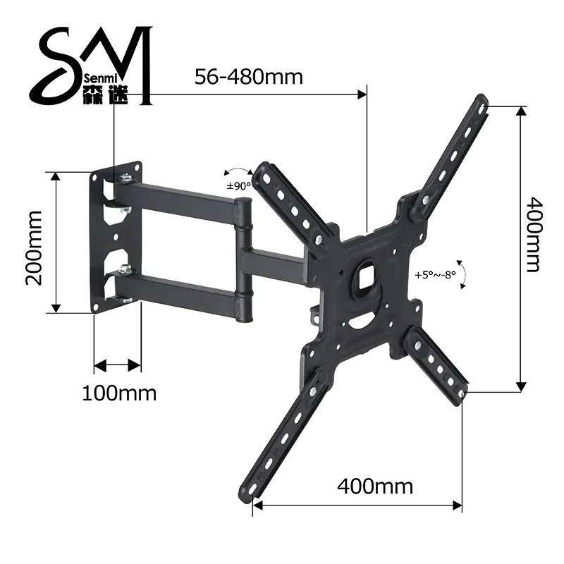 Настенное крепление для ТВ использует пространственно-экономный дизайн, гарантируя, что данное поворотное настенное крепление может быть полностью скрыто за телевизором. В то же время, регулируемое расстояние от стены настенного крепления также было протестировано профессионалами, чтобы обеспечить соответствие шарнирного крепления потребностям клиентов в регулировке ТВ.