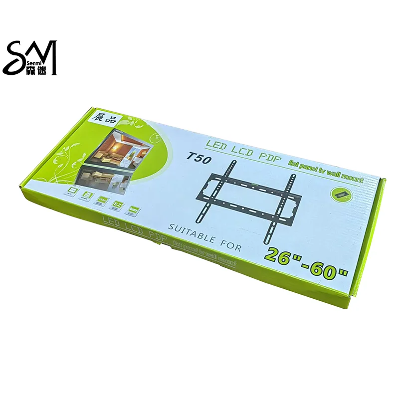 Тонкое настенное крепление для телевизора T50 представляет собой фиксированное крепление, подходящее для телевизоров 26-60 дюймов. Толщина данного крепления для 55-дюймового телевизора составляет 1,3 мм. Грузоподъемность крепления для телевизора составляет 50 кг. Максимальный стандарт VESA данного крепления составляет 400*400 мм. Данное крепление для телевизора пользуется высоким спросом на рынке и является одним из наших самых продаваемых продуктов. Настенное крепление для телевизора T50-A может использоваться для установки телевизоров различных брендов в различных сценариях. Это причина, по которой данная модель так популярна во всем мире.