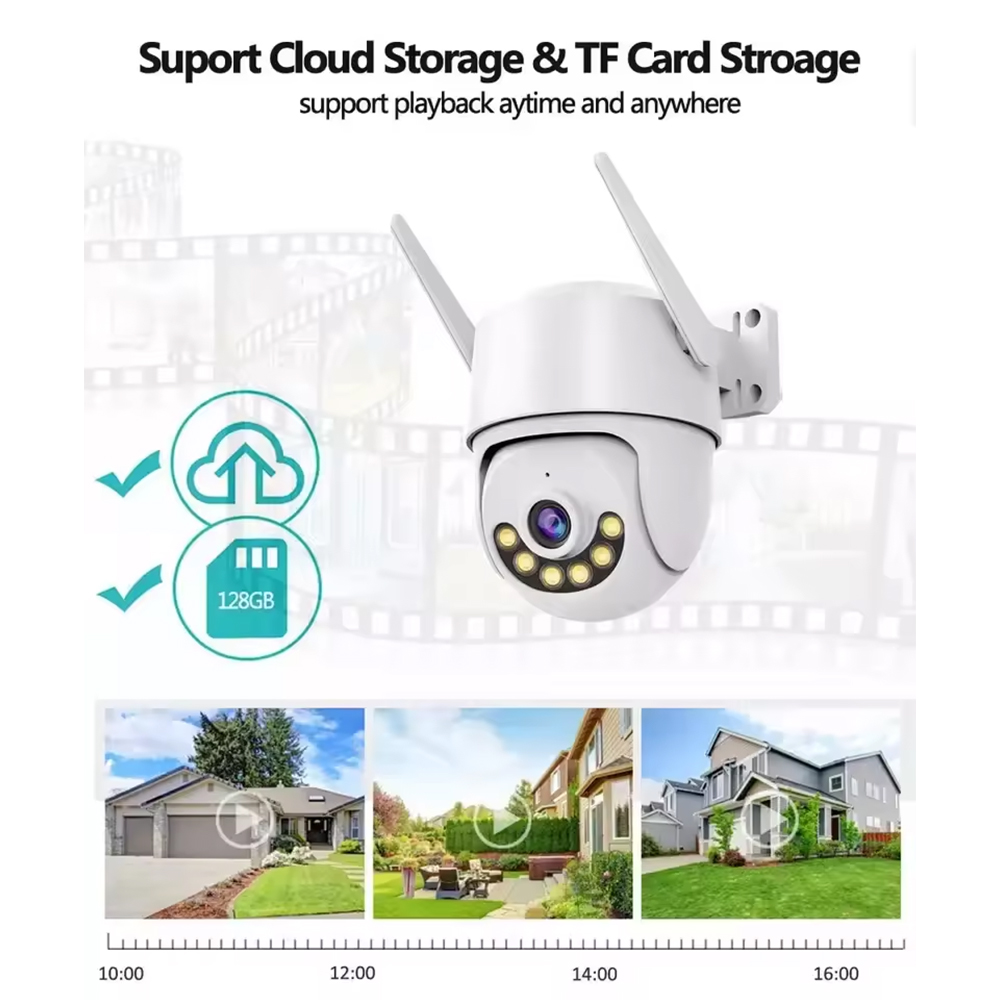 Поддерживает облачное и локальное хранение данных на карту TF, с возможностью загрузки видеозаписей на мобильное устройство, обеспечивая безопасное и удобное управление данными.Встроенный высокочувствительный микрофон и динамик обеспечивают двустороннюю голосовую связь, позволяя взаимодействовать с зоной наблюдения в режиме реального времени.Функция обнаружения движения в зоне наблюдения при выявлении аномалий немедленно отправляет сигнал тревоги, обеспечивая точную защиту вашей безопасности.