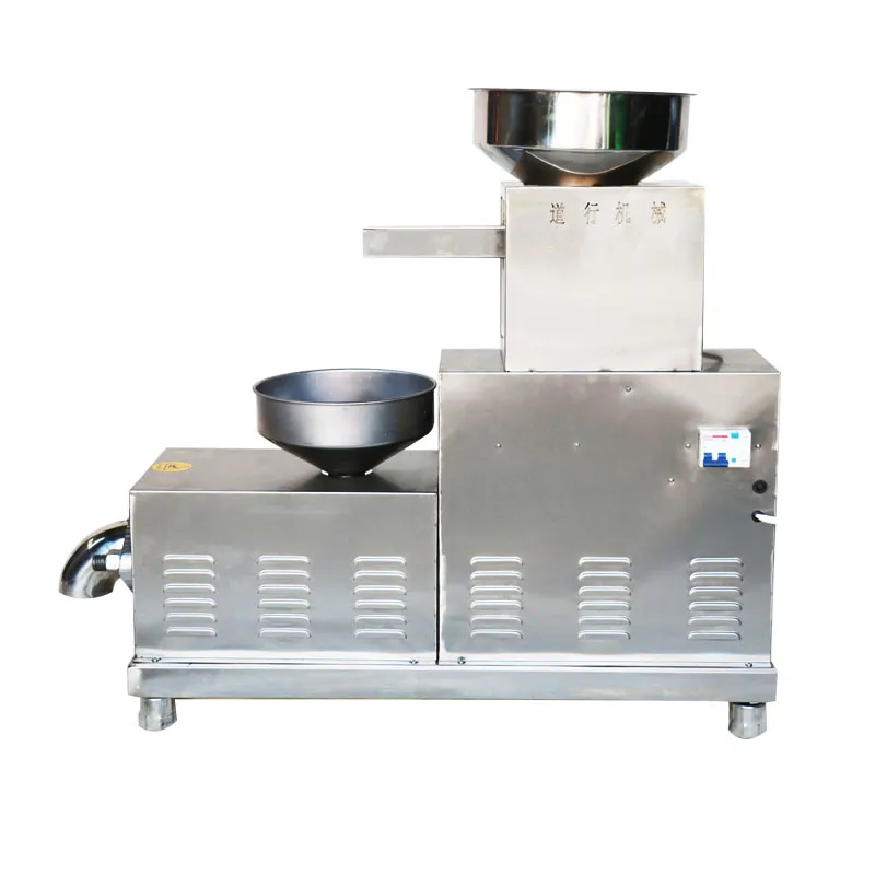 Настольная маслодавилка модели DH55-D, эффективная и мобильная. Корпус из пищевой нержавеющей стали, габариты 90×38×50 см, вес 61 кг, прочная и долговечная конструкция, адаптирована для многоцелевого использования в домашних условиях, коммерческих помещениях и малых производствах.