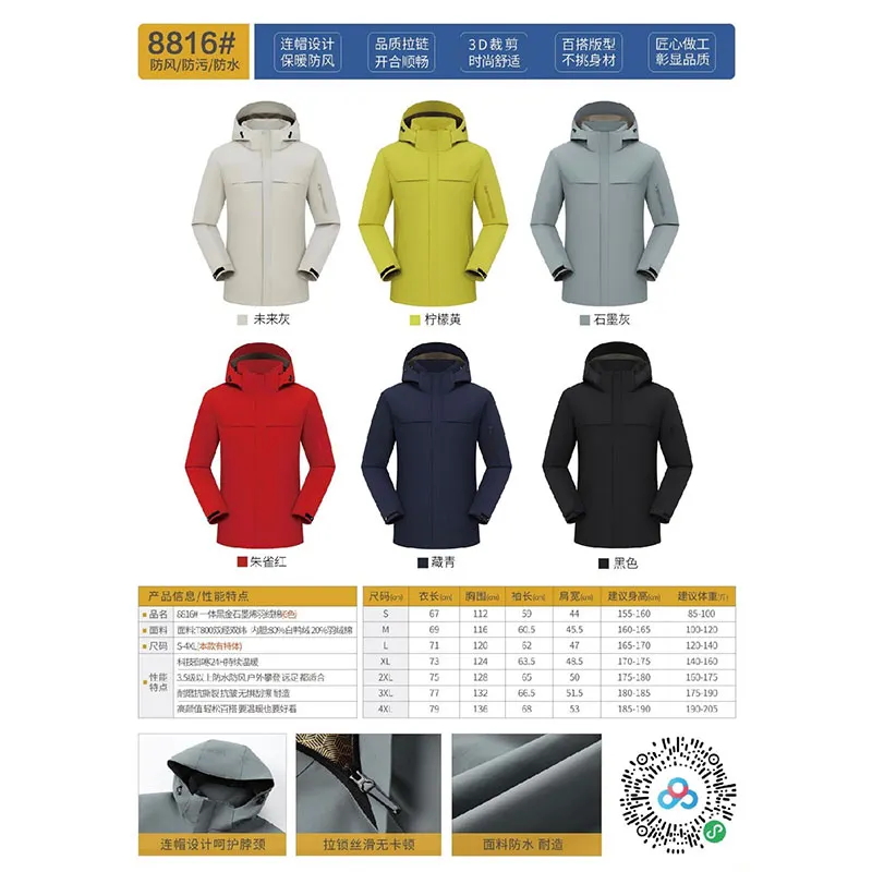 Модель ветрозащитной куртки 8816# предлагается в шести стильных цветовых решениях, отвечающих разнообразным эстетическим запросам: футуристичный серый с технологичным акцентом, энергичный лимонно-жёлтый, универсальный тёмно-серый, страстный ярко-красный, классический тёмно-синий и вневременной чёрный. Дизайн с капюшоном и трёхмерным кроем не только надёжно защищает шею от холодного ветра, но и сочетает модный силуэт со свободой движений. Универсальный фасон тщательно оптимизирован, обеспечивая превосходную посадку на разных типах фигур, а широкий размерный ряд от S до 4XL позволяет подобрать вариант для любого телосложения.