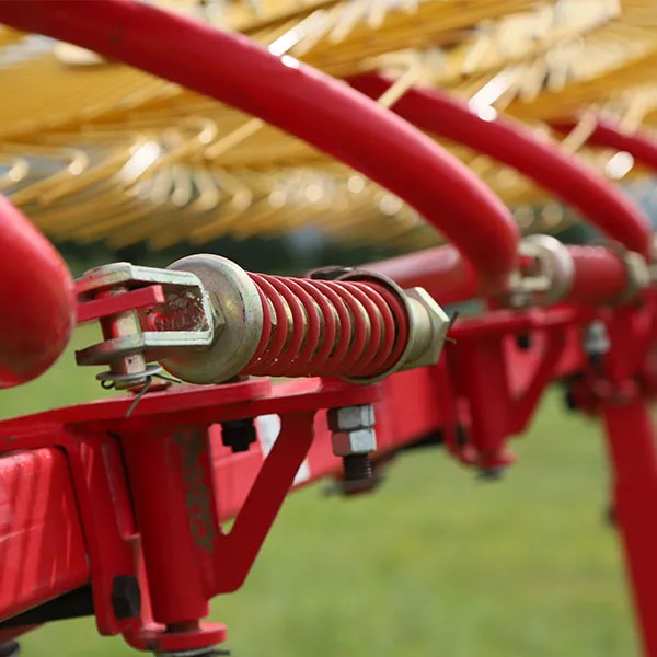 Данный агрегат характеризуется широкой рабочей шириной захвата, высокой производительностью, простой конструкцией, удобством управления, безопасностью и надежностью, равномерностью формирования валков, хорошей воздухопроницаемостью, а также полным гидравлическим управлением подъемом и опусканием грабельных дисков.