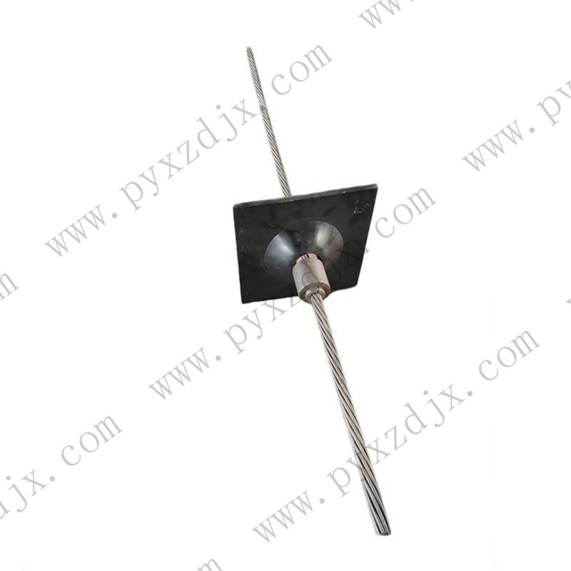 Структурный состав: он обычно состоит из корпуса кабеля, анкерного крепления, поддона и т.д. Корпус кабеля обычно изготавливается из стальной пряди с определенной гибкостью на изгиб; анкерное крепление используется для фиксации корпуса кабеля и передачи натяжения; поддон равномерно передает натяжение анкерного кабеля на закрепленную структурную поверхность.