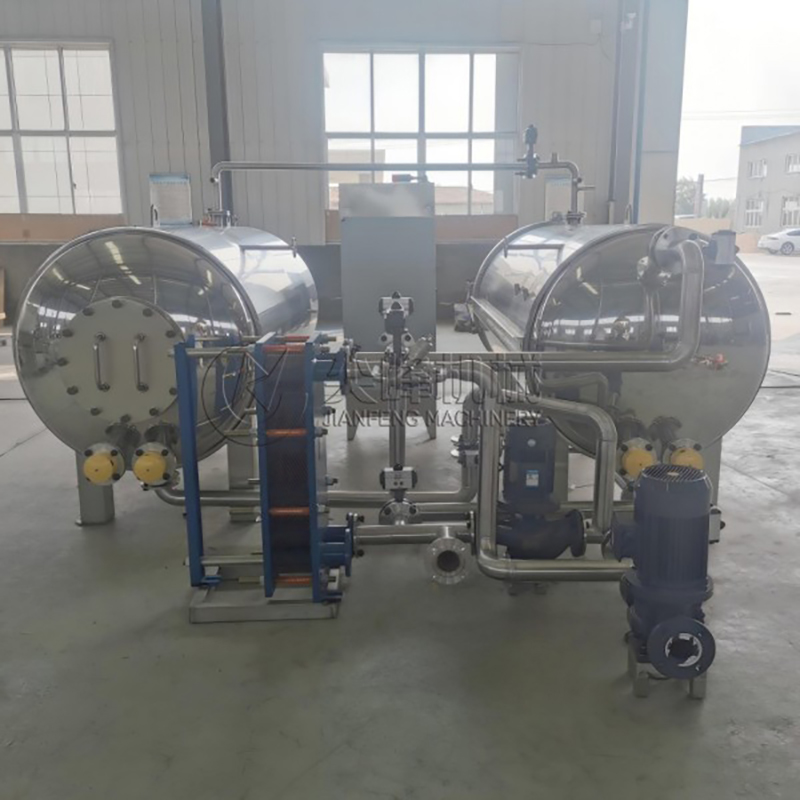 Бак для стерилизации: содержит продукты для стерилизации при высокой температуре и высоком давлении, обеспечивая равномерное проникновение тепла через систему циркуляции горячей воды.