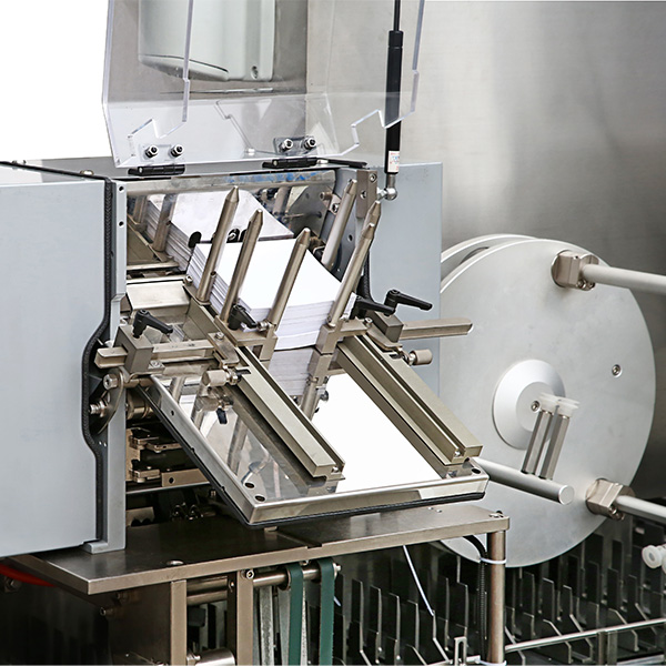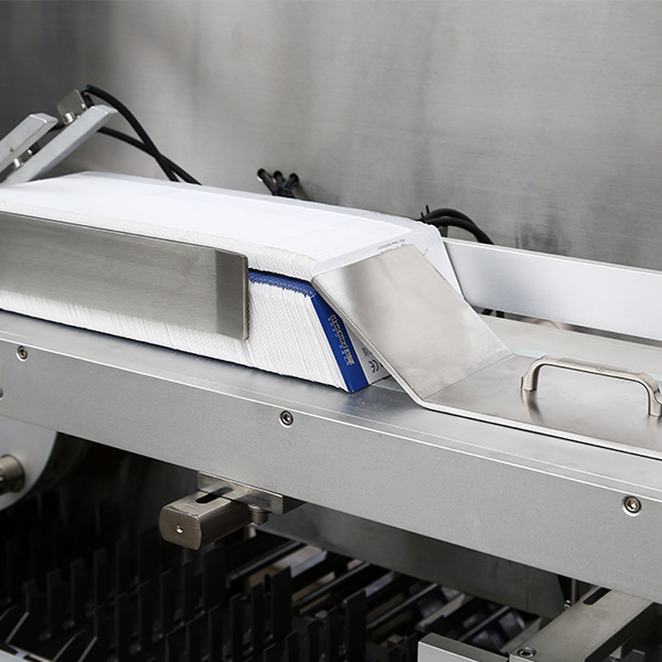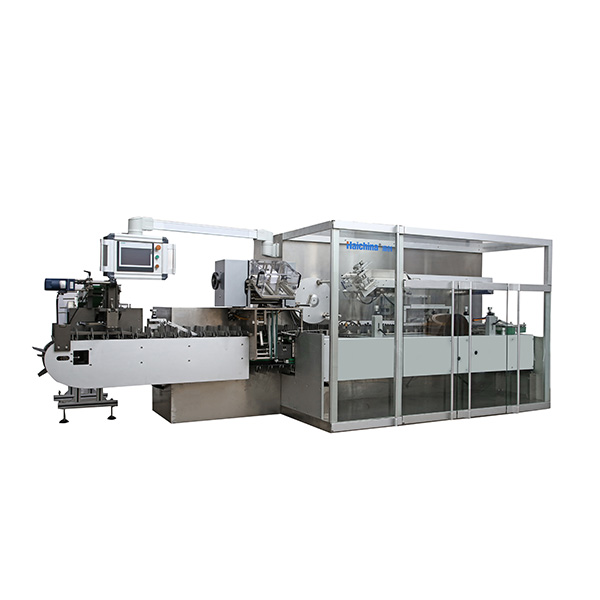 2.Готовая продукция и руководства автоматически помещаются в коробку, запечатывают коробку и печатают номер партии, а скорость упаковки составляет до 260 коробок в минуту.