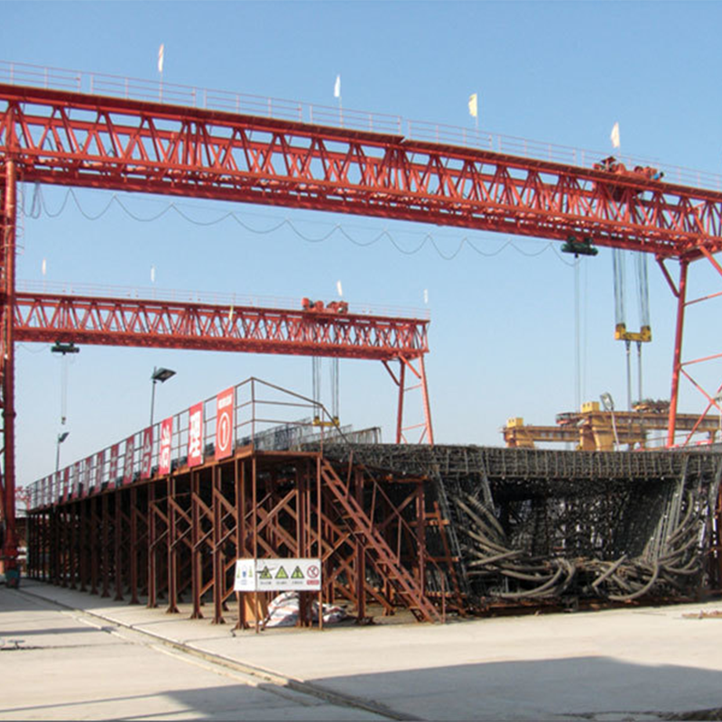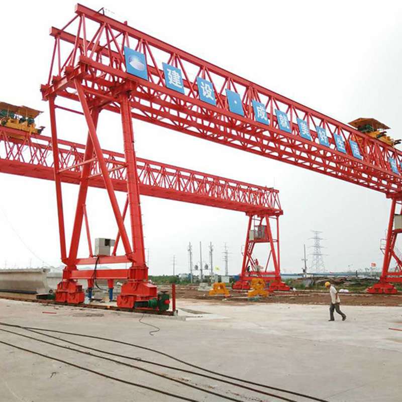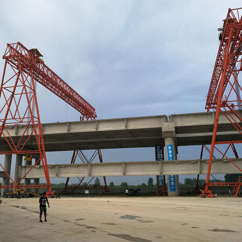 4.Подъемник для балок в основном состоит из сборной главной балки, опорных ножек, подвесного крана и т. д. Детали соединяются с помощью штифтов и высокопрочных болтов, что облегчает демонтаж, транспортировку и сборку.