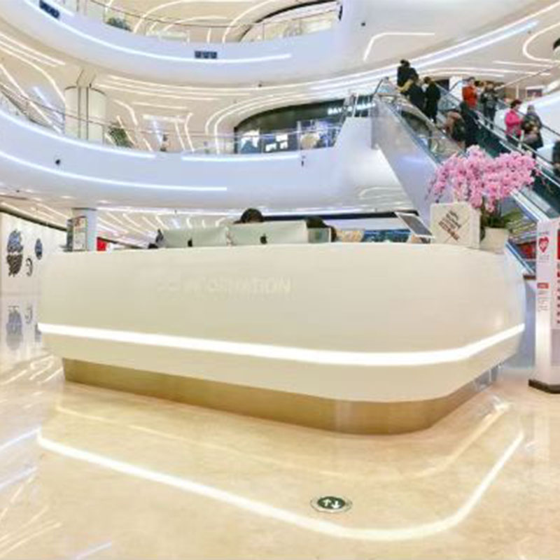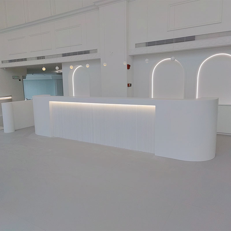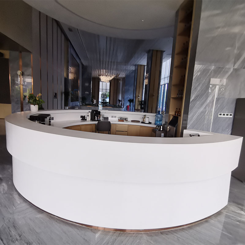 Функционально он разработан с учетом требований эргономики. Высота обеспечивает удобство как для стояния, так и для общения с клиентами. Столешница просторна и может вместить различные предметы, чтобы удовлетворить потребности в обслуживании. Более того, акриловый искусственный камень может быть разнообразно обработан, может быть настроен в соответствии с потребностями пространства уникальной формы, такой как дуга, фигурная форма и т.д., чтобы увеличить уникальность пространства и динамичность.