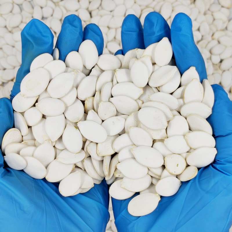 Белоснежные тыквенные семечки обычно классифицируются по целостности зерен и цвету согласно ближневосточному и европейскому стандартам. Ближневосточный стандарт допускает 5% легких загрязнений, европейский стандарт — 2% загрязнений. Влажность не превышает 9%, примеси — не более 0,5%. Они широко применяются: могут употребляться напрямую как здоровый перекус, использоваться в выпечке, украшении салатов, смесях орехов и других пищевых продуктах. Кроме того, благодаря высокому содержанию цинка, ненасыщенных жирных кислот и пищевых волокон, они обладают полезными свойствами: антиоксидантным действием, снижением холестерина, контролем уровня сахара в крови, защитой предстательной железы. Также применяются в производстве пищевых добавок и антипаразитарных препаратов (например, для лечения тениоза).