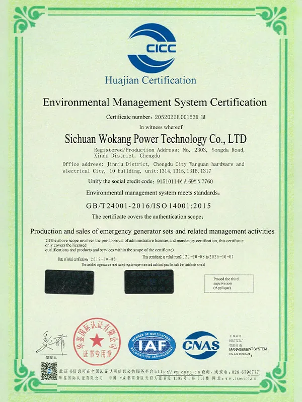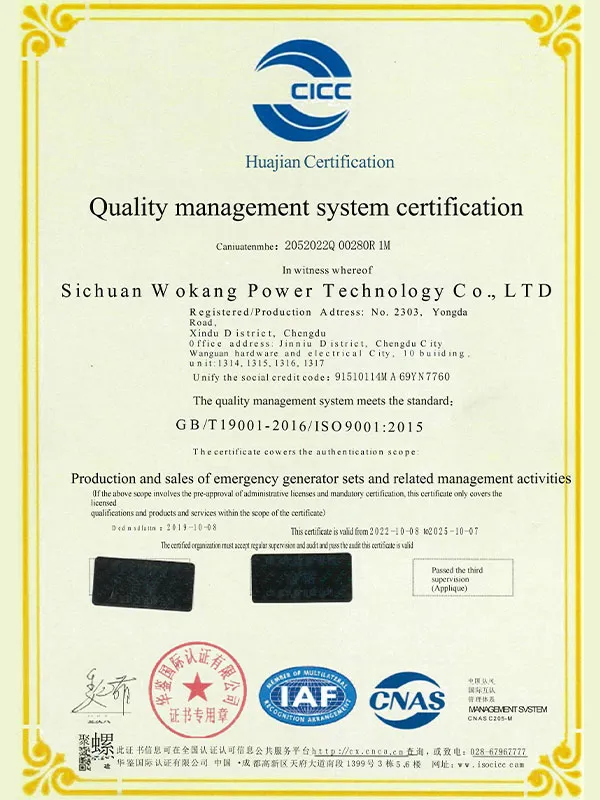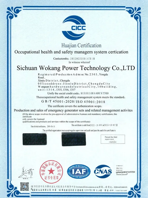ООО Сычуань Вокан Энергетические И Силовые Технологии расположено в районе Синьду города Чэнду, занимая площадь завода 12600 м². Являясь одним из крупнейших поставщиков генераторов и компонентов на юго-западе Китая с более чем 30-летней историей, компания интегрирует производство, продажи, техническое обслуживание, поставку запчастей, аренду и инжиниринговые услуги, предлагая дизельные/газовые генераторные установки мощностью от 3 до 3000 кВт.