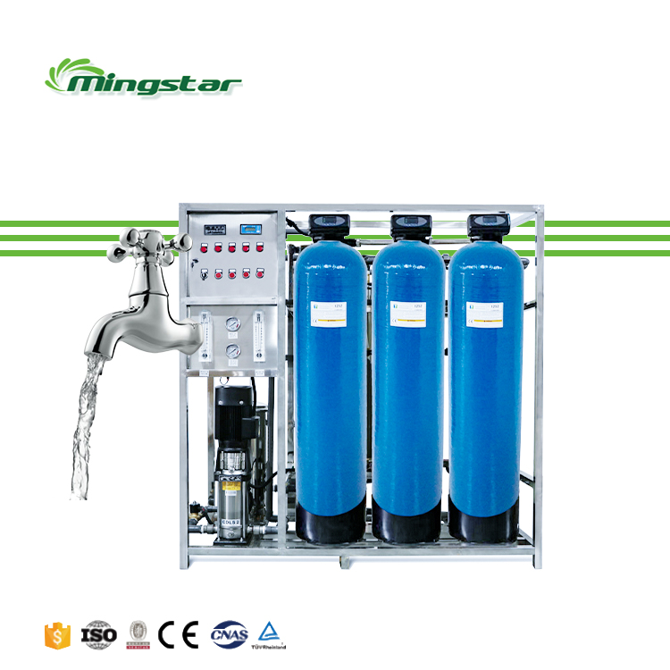 насос сырой воды → механический фильтр (фильтр с кварцевым песком) → фильтр с активированным углем → защитный фильтр → насос высокого давления → система обратного осмоса → озоновый стерилизатор (УФ-стерилизатор).