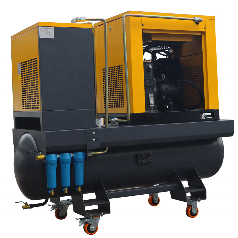 Недавно выпущенный винтовой воздушный компрессор с регулируемой частотой и постоянными магнитами «четыре в одном » удовлетворяет потребности в промышленном сжатом воздухе за одну остановку! винтовой компрессор с осушителем , винтовой компрессор с резивером , винтовой компрессор с осушителем и резивером и компрессор винтовой частоты в одном, мощность охватывает 4 кВт-22 кВт ( 5,5 л.с.-30 л.с. ), точно соответствует винтовой компрессор 5,5 кВт , 7,5 кВт , 11 кВт , 15 кВт , 22 кВт и другие основные модели, также поддерживают винтовой компрессор высотой 16 бар рабочее состояние под давлением, обеспечивающее всестороннюю мощность для обрабатывающей промышленности!