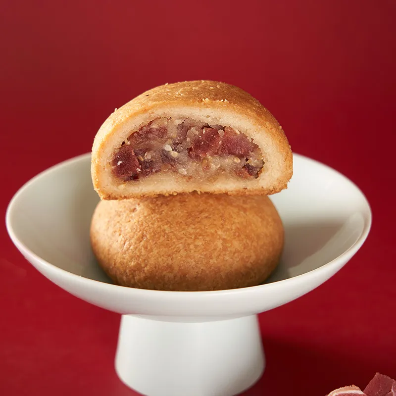 Откусите кусочек этого изысканного лунного пряника с юньнаньской ветчиной и насладитесь классическим очарованием юньнаньского вкуса! Отборная ветчина высшего качества, собранная в Сюаньвэе (Юньнань), проходит традиционные процессы обработки, включая вяление, ферментацию и сушку на воздухе, в результате чего получается твердая, пикантная и насыщенная ветчина. Нарезанная на небольшие кусочки и тщательно смешанная с медом и салом для создания начинки, каждая порция раскрывает пикантный аромат ветчины и влажность ее жира, создавая уникальное сочетание сладких и пикантных вкусов. Корочка, изготовленная мастерами по традиционным технологиям, многослойная, хрустящая, но при этом плотная. При легком укусе корочка отваливается, и аромат начинки мгновенно разливается по всему рту.