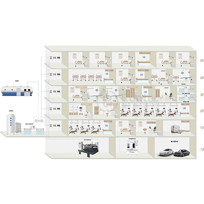 Трубопроводная сеть медицинского газа в основном используется для транспортировки медицинского кислорода к терминалам различных отделений больницы;