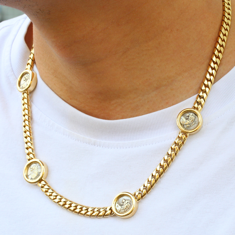Используя древние монеты в качестве средства массовой информации и изобретательность в качестве ручки, сгущая историческую тяжесть и искусство ручной работы в теле цепи, это одновременно ретро-декларация для повседневного ношения и « миниатюрное произведение искусства», которое стоит лелеять.