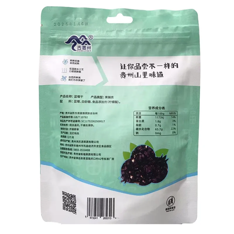2.Высококачественная, тщательно отобранная черника проходит многоэтапный процесс, включающий мойку, подкормку, сахаризацию, выпечку, сушку, сортировку и упаковку, что позволяет эффективно сохранять вкус и питательные вещества.
