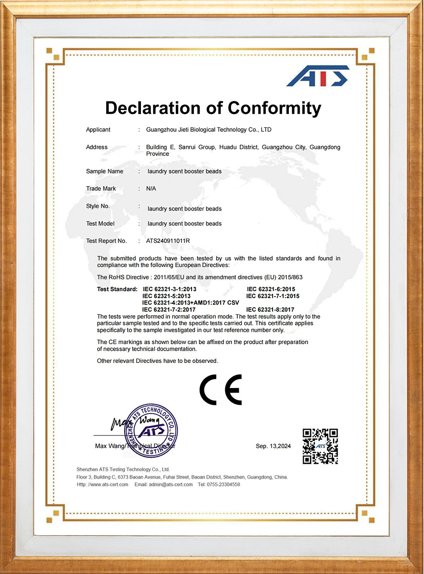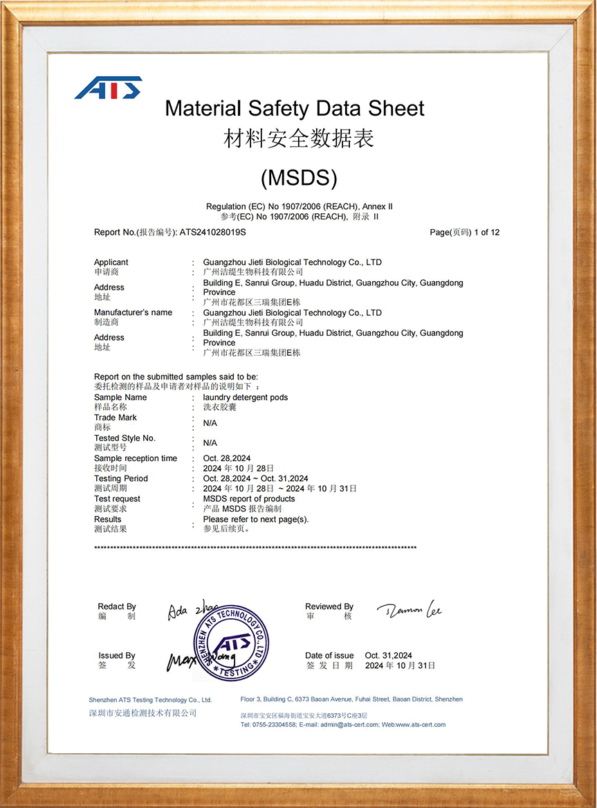 Jieti Biotechnology придерживается принципов безопасности, экологичности и заботы о здоровье. Все наши формулы безопасны, не вызывают раздражения, не оставляют следов и подходят даже для чувствительной кожи и младенцев. Мы используем биоразлагаемое сырьё, поддерживая устойчивое развитие в сфере экологически чистой стирки.