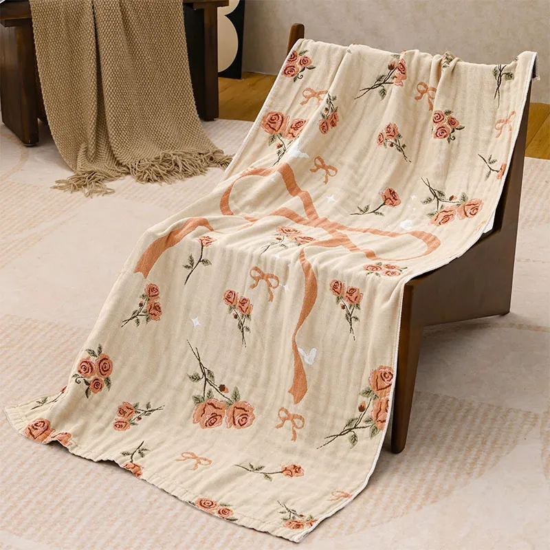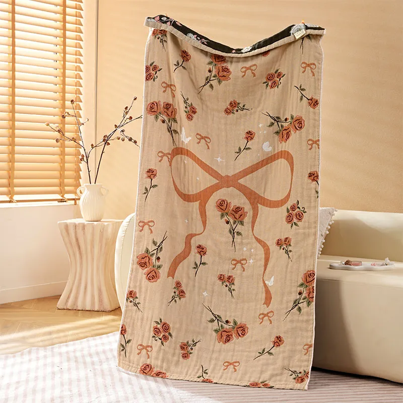 2.Характеристики материала: Марля изготовлена из натурального чистого хлопка и соткана из нитей основы и утка. Четыре слоя марли создают увеличенный зазор в полотенце, что обеспечивает отличную воздухопроницаемость и предотвращает ощущение стянутости при обертывании. В то же время, материал из чистого хлопка мягкий и приятный для кожи, не вызывая раздражения, что делает его особенно подходящим для младенцев, беременных женщин и людей с чувствительной кожей.
