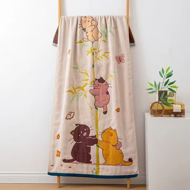 Это полотенце изготовлено из отборной смеси полиэстера и хлопка, тщательно сотканной из четырех слоев марли. Оно сочетает в себе мягкость хлопка с прочностью и текстурой полиэстера, обеспечивая баланс комфорта и практичности. Свободная, дышащая текстура предотвращает ощущение стянутости кожи, а влагопоглощение превосходит чистое полиэстер. Полотенце быстро сохнет после купания и легко сушится на воздухе, что снижает риск размножения бактерий.