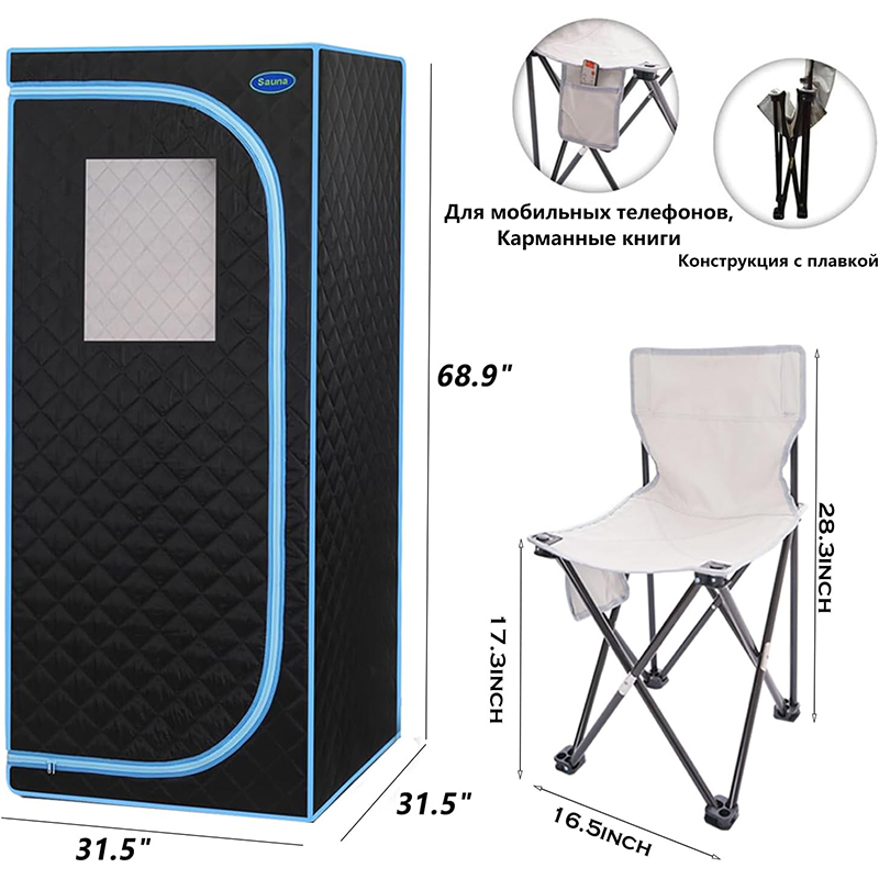 1. материал: углованная полированная ткань с крановой укладкой снаружи, водонепроницаемый ПВХ с покрытием внутри с хлопка в середине. Есть три панели нагрева углерода, каждый нагреватель точно установлен для равномерного, устойчивого тепла. Сауна может быть открыта и омыта непосредственно, что делает ее более чистой и удобной