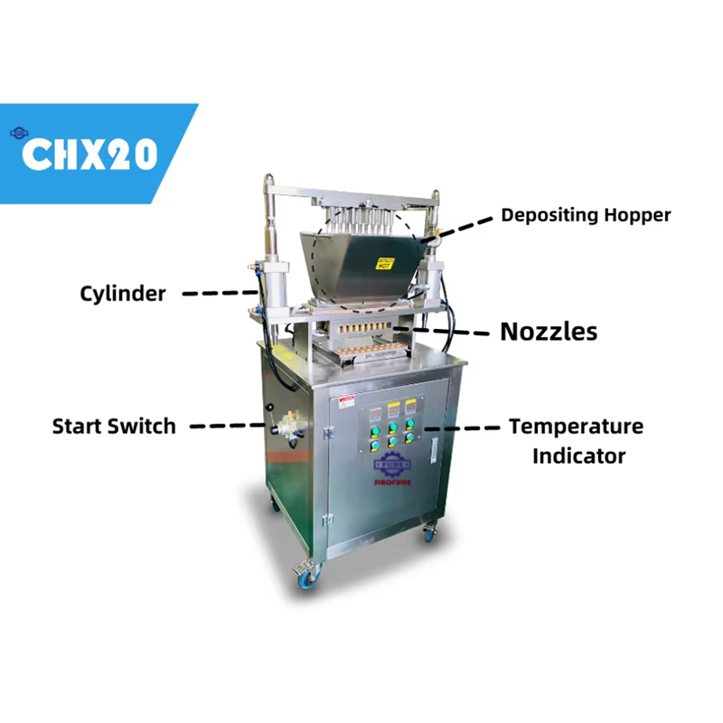 1.Укладка в цилиндр. Можно регулировать, чтобы сделать различный вес конфет с системой очистки более удобным для очистки.