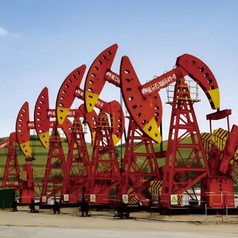 1.Гибкий штоковый канат, 2. Сальниковый патрон полированного штока, 3. Подвесной ролик, 4. Передний балансир, 5. Балансир (качалка), 6. Стойка, 7. Фундаментная рама (основание), 8. Тормозное устройство, 9. Силовой агрегат, 10. Тормозное предохранительное устройство, 11. Редуктор, 12. Кривошипный механизм, 13. Кривошипный штифт, 14. Шатун, 15. Траверса, 16. Приводной трос, 17. Площадка стойки, 18. Задний балансир, 19. Штифт крепления троса.