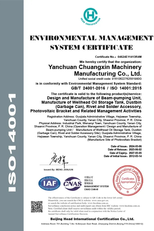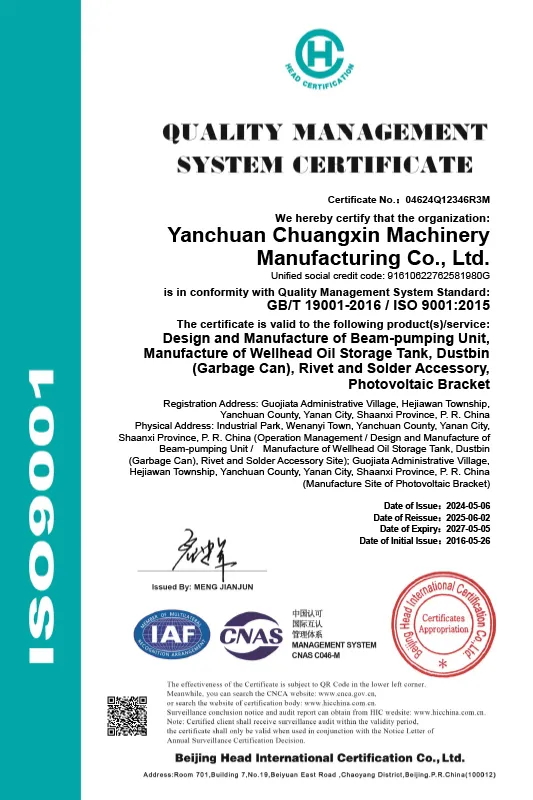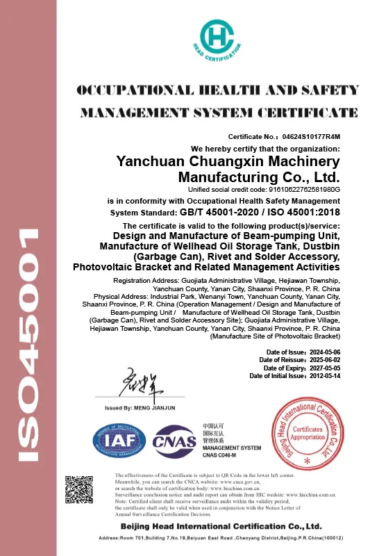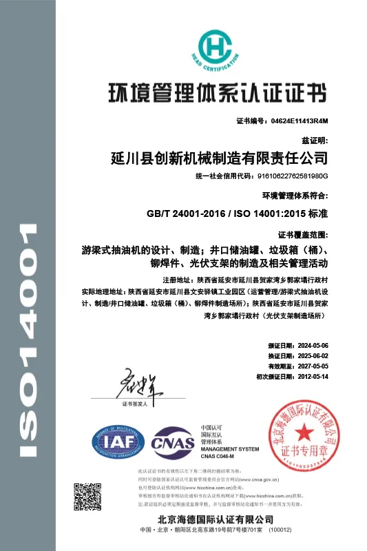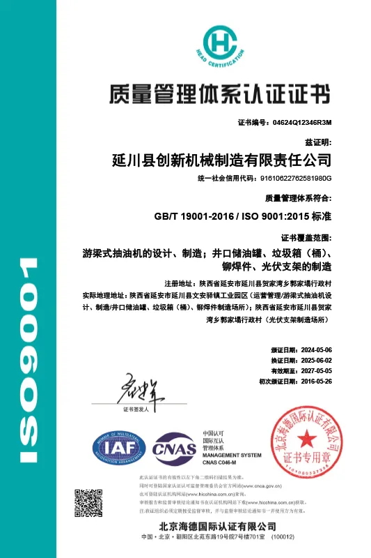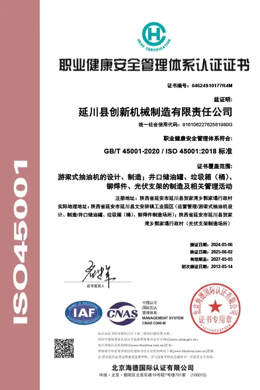API Spec 11E、ISO 9001、ISO 9002、ISO 4001、OHSAS 8001