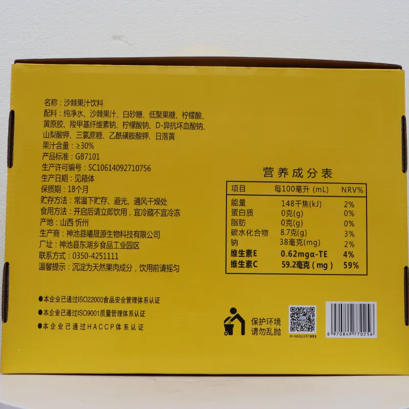 1. Дацишуан напиток из облепихи, 236 мл, упаковка 10 шт, модная версия: этот облепиховый напиток тщательно отобран из ягод дикой облепихи, выращенной в уезде Шэньчи провинции Шаньси. Выращенные на большой высоте и в экологически чистой среде, эти плоды обладают исключительной питательной ценностью. Технология сверхкритической экстракции CO2 используется для точного извлечения основных ингредиентов из ягод облепихи, которые затем добавляются в напиток. Содержащий 30% оригинального сока, он обладает сладким, но освежающим вкусом с правильным количеством терпкости. Богатый антиоксидантами, такими как флавоноиды облепихи, он эффективно удаляет свободные радикалы в организме. Регулярное употребление может помочь замедлить старение и повысить иммунитет.