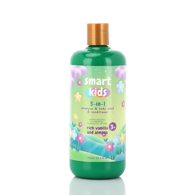 Функция 3-в-1: шампунь + кондиционер + гель для душа. Мягкое очищение с одновременным питанием волос и кожи. Время купания сокращается на 50%!