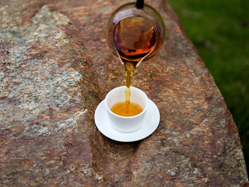 2、Настой Дикого высокогорного теньхунского черного чая – ярко-оранжево-красный, с насыщенным цветочным ароматом, который пронизывает всё пространство.