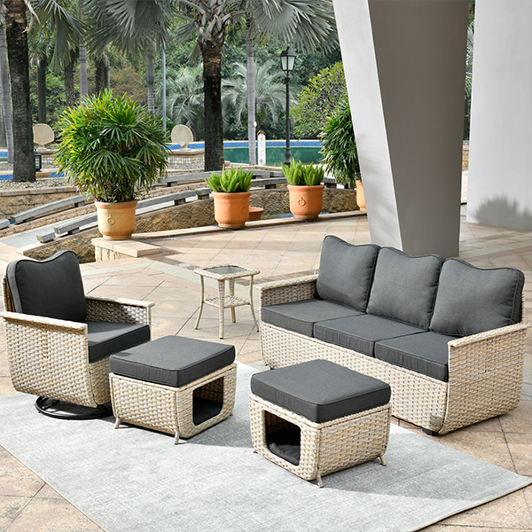 Изготовленный из пищевого полиэтиленового ротанга, он выдерживает более 3000 часов использования на открытом воздухе под солнцем и дождем и имеет гарантию 60 месяцев.