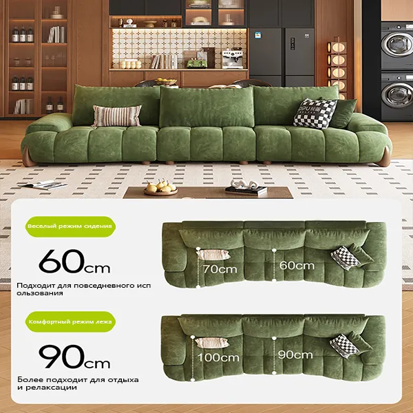 1.Диван «Кешью»Семья потомственных мастеров имеет каркас из массива дерева, который обеспечивает прочную конструкцию, устойчивую к влаге и растрескиванию, а также обладает отличной несущей способностью. Мягкая обивка с наполнителем из высокоэластичной пены обеспечивает мягкость и упругость сиденья, а также превосходный комфорт.