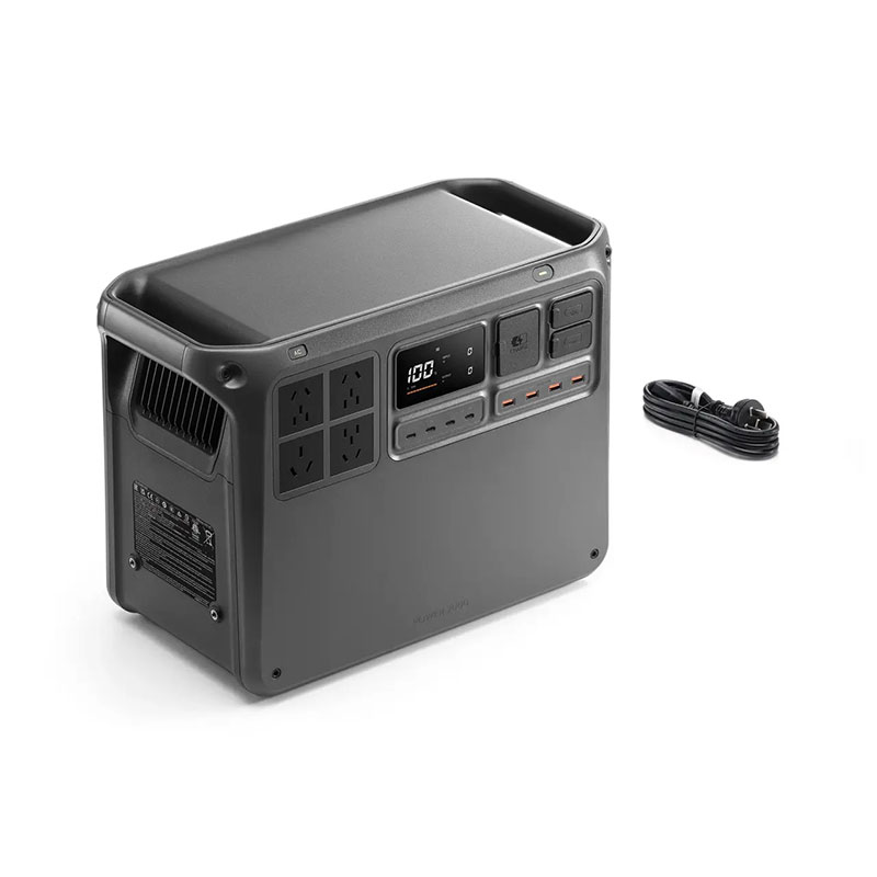 Ёмкость 2 кВт·ч — как у полноценной электростанции, но при этом размером всего с 16-дюймовый мини-чемодан для ручной клади. Все порты, кнопки и экран удобно размещены на передней панели, что упрощает управление и экономит место при хранении. При подключении дополнительного аккумулятора можно увеличить ёмкость до 2.2 кВт·ч.