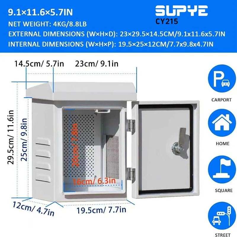 Наружный водонепроницаемый электрошкаф - 9.1 * 11.6 * 5.7 дюймов, электрошкаф из оцинкованной стали со съемной монтажной панелью и вентиляционным отверстием с жалюзийным вентилятором (23 * 29.5 * 14.5 см)