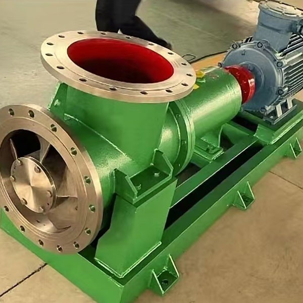 В основном используется осевая или смешанная структура (например, осевой насос типа SDQL, смесительный насос ECP), крыльчатка спроектирована как пропеллерная форма, которая генерирует горизонтальную тягу вдоль оси насоса для достижения большой подачи.