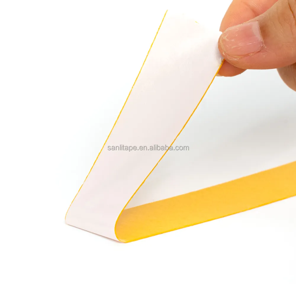 Двусторонние ленты тканевые на тканевой основе изготавливается с использованием хлопчатобумажной ткани или ткани из синтетических волокон в качестве основного материала, с нанесением чувствительного к давлению клея на обе стороны. Она имеет белую бумагу с силиконовым покрытием, бумагу из пергамина цвета куркумы и толстый клеевой слой. Она обеспечивает прочное сцепление, отличные динамические характеристики и широко используется в строительной отрасли и для крепления ковров.