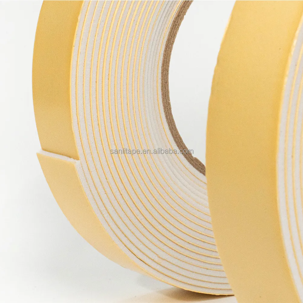 Двусторонняя пенопластовая лента EVA изготовлена из сополимера этилена и винилацетата в качестве основного материала, с высокоэффективным акриловым клеем на масляной основе или клеем на резиновой основе, нанесенным на обе стороны. Она широко используется на таких поверхностях, как автомобильные детали, настенные украшения, керамика и дерево.