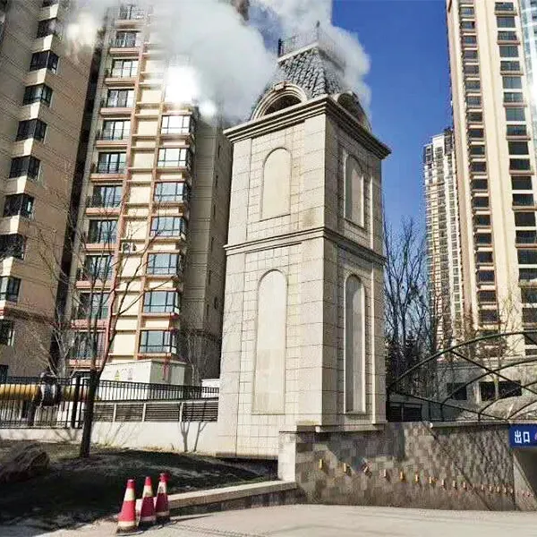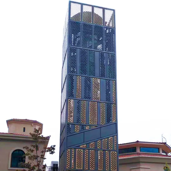 Наружная облицовка каркасов башен и дымовых труб предполагает использование панелей из алюминиевого сплава в качестве основного материала для создания внешней декоративной оболочки (или «навесной стены») для каркасов промышленных башен, стальных конструкций и дымовых труб. Эта оболочка либо полностью охватывает исходную промышленную конструкцию, либо служит художественным украшением в ключевых точках, тем самым обеспечивая всестороннее эстетическое улучшение.