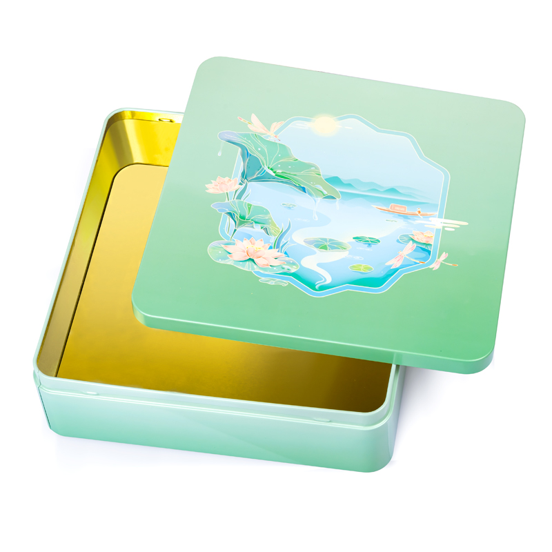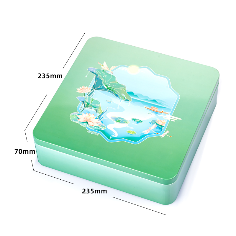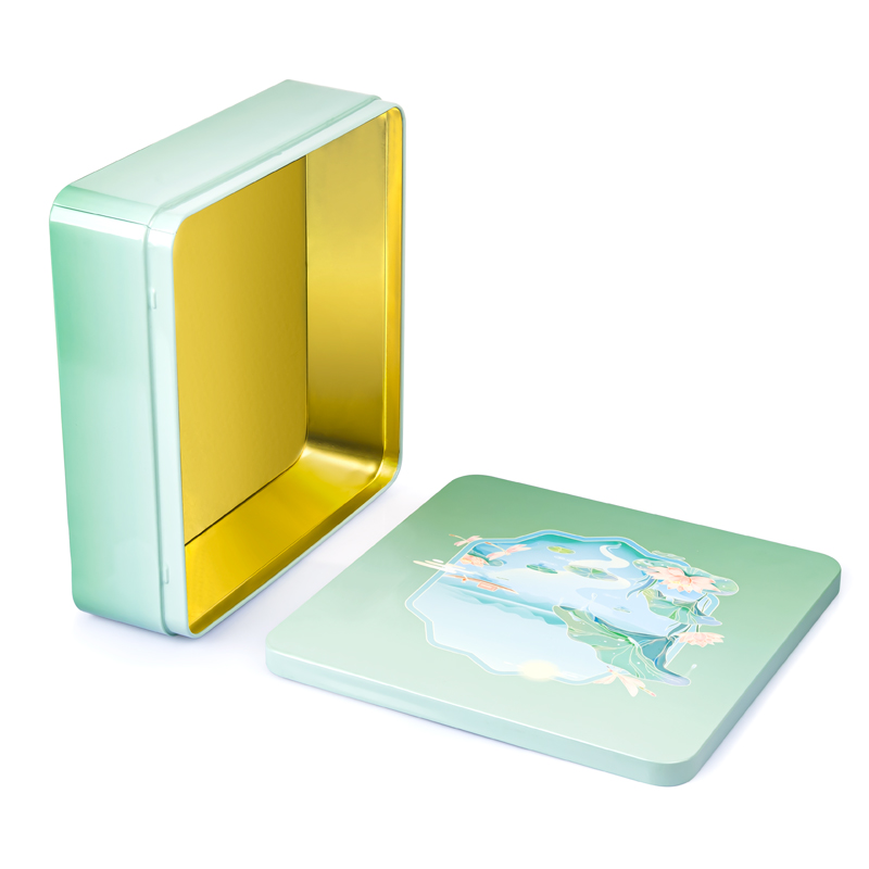 ◆ Название продукта: Фабрика индивидуальные квадратные жестяные коробки с крышкой пищевой класс жестяные банки для печенья печатные жестяные банки для конфет лунных пирогов металлические жестяные банки зеленые