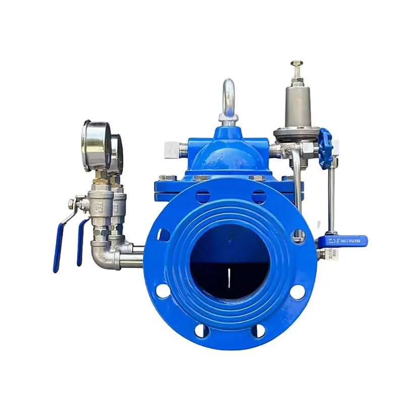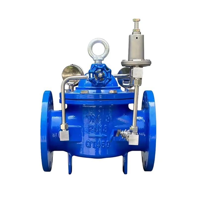 Фланцевый редукционный клапан, это ключевой клапан для контроля давления трубопроводной среды, в системах водоснабжения и водоотведения, пожарной и других системах играет ключевую роль. Его основной корпус часто бывает синего цвета, через фланец и трубопроводное неразъемное соединение, корпус клапана, заслонка клапана, пружина, регулировочные болты и другие компоненты. Корпус клапана в основном изготовлен из высокопрочного ковкого чугуна или литой стали, с сильным сопротивлением сжатию; заслонка клапана и уплотнения изготовлены из высококачественной резины, нержавеющей стали и т.д., с хорошими уплотнительными характеристиками. При работе, среда поступает в корпус клапана, заслонка клапана автоматически регулирует открытие в зависимости от заданного значения давления, входное давление повышается, заслонка клапана закрывается, уменьшая расход, снижая экспортное давление; входное давление снижается, заслонка клапана открывается, чтобы поддерживать стабильное экспортное давление, для защиты нижележащего оборудования и трубопроводов в безопасном диапазоне давления. Преимущества клапана - точная регулировка давления, сильная устойчивость к гидроударам, простота обслуживания, удобная замена уплотнений, длительный срок службы и т.д. Это идеальный выбор для обеспечения стабильной работы трубопроводных систем.
