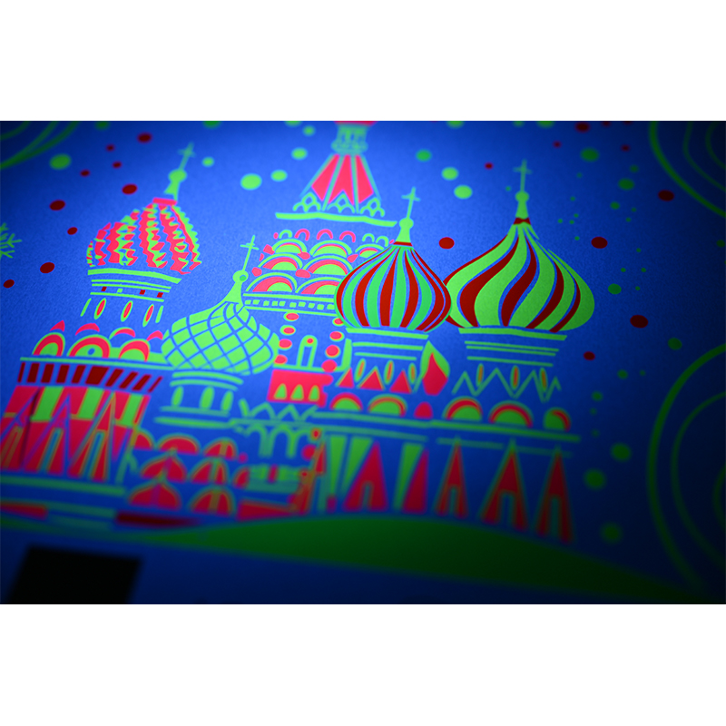 Доступна в различных цветах, включая красный, фиолетовый, синий, розовый и зеленый.