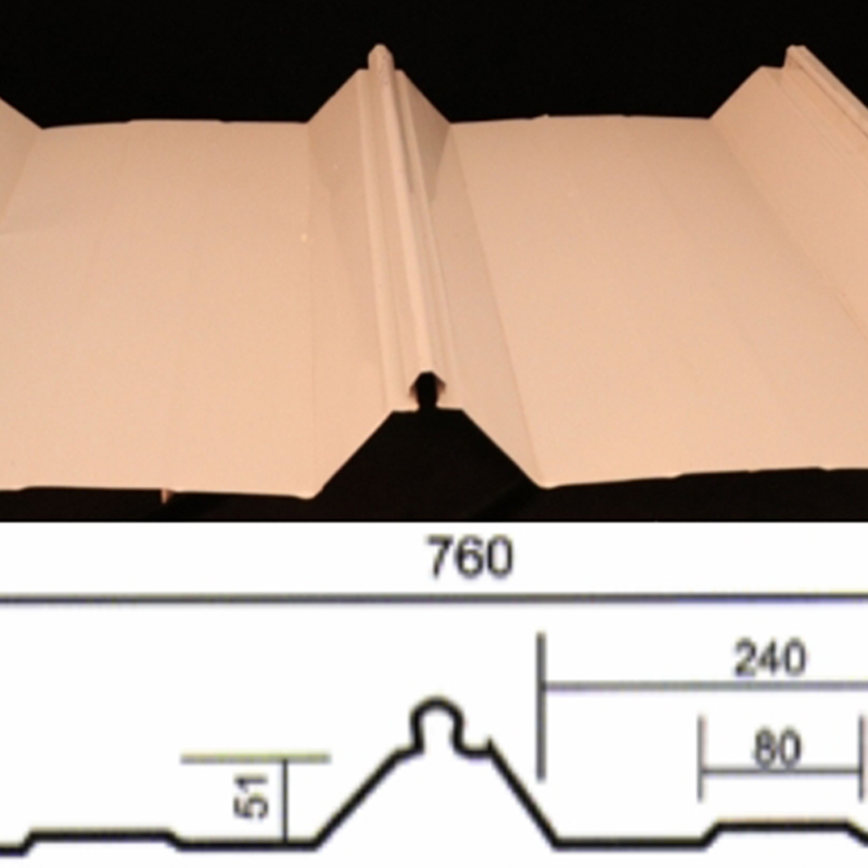 Высокая прочность: высота волны 51 мм, расстояние между волнами 380 мм, эффективная ширина 760 мм после формовки, высокая прочность, подходит для большепролетных крыш.