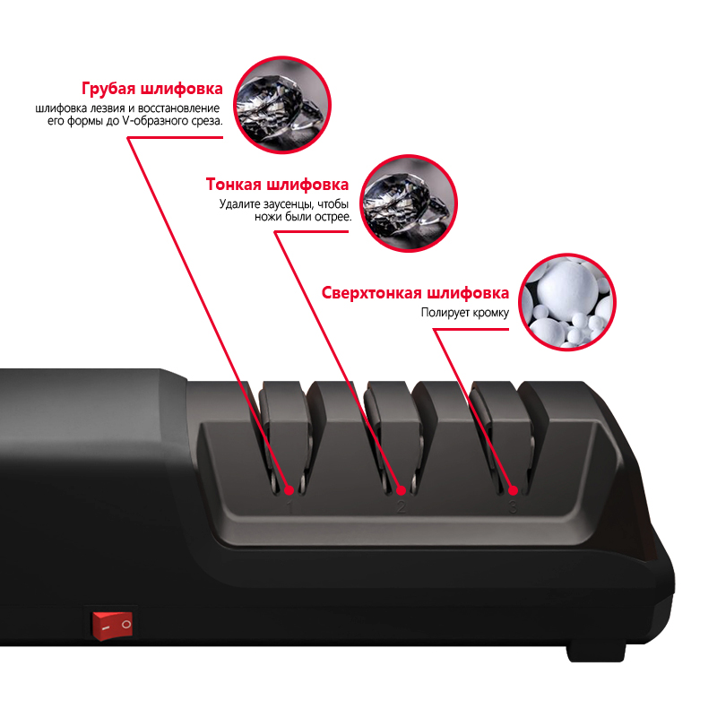 Эта точилка идеально сочетает точность профессиональной заточной мастерской с удобством бытового прибора, позволяя добиться профессиональной остроты лезвия без специальных навыков. Её современный и стильный дизайн добавит технологичной эстетики любой кухне, делая её отличным выбором для тех, кто ценит эффективность и качество.