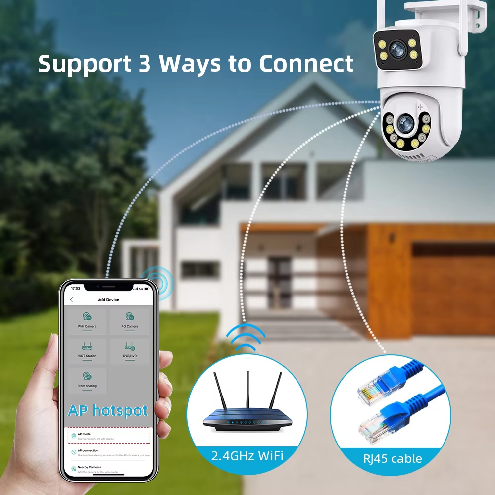 Q29 Полностью белая WiFi-камера с двумя объективами и поворотным штативом, минималистичный корпус белого цвета, два встроенных объектива 3,6 мм и датчик SC300AI, основной поток 2048×1536@12 fps, дополнительный поток 800×448@12 fps, качество изображения 3K. Поддержка WiFi/провода, локальное циклическое хранение на TF-карте 8-128 ГБ, запись даже при отключении сети. Интеллектуальное переключение между инфракрасным и полноцветным ночным видением, четкое изображение даже в темноте. Панорамный поворот по горизонтали 355°, по вертикали 90°, управление всей камерой с помощью одного пальца на смартфоне. Дальность обнаружения человека по тепловому излучению 20-30 м, двусторонняя голосовая связь для мгновенного общения, устойчивость к низким и высоким температурам от -20 °C до 55 °C, влажности 20 %-80 % RH, не боится суровых условий эксплуатации. Питание от DC 12 V 2 A (блок питания приобретается отдельно), размеры 185×158×108 мм, вес около 1 кг, круглосуточная профессиональная охрана для дома, магазина, склада.