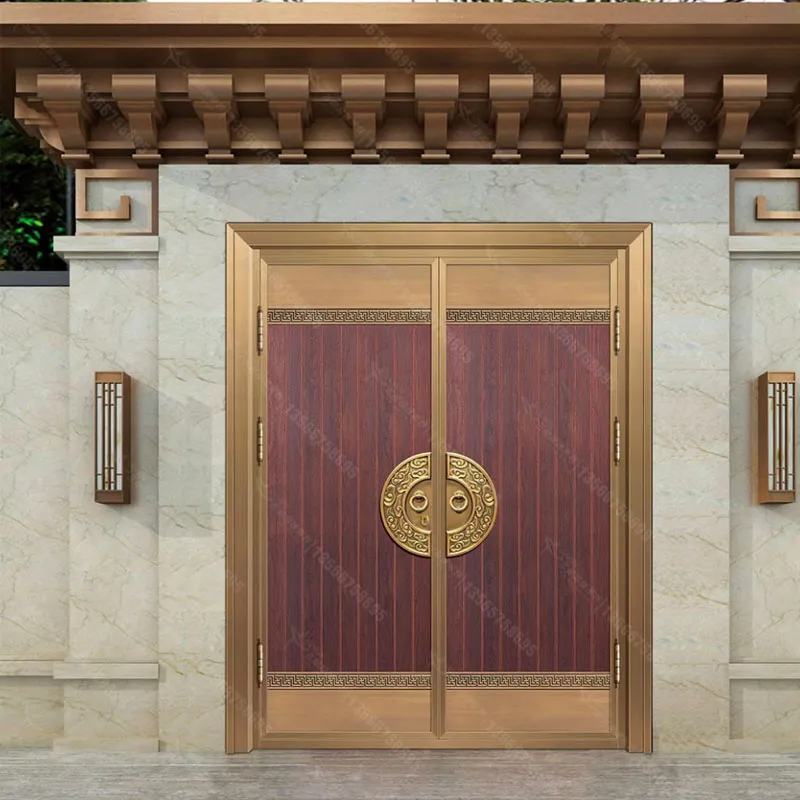 Главное преимущество сделанный на заказ медных дверей заключается в полной адаптации под потребности клиента. От размеров полотна и толщины меди до рельефной резьбы, цветовых решений и технологий отделки — каждый аспект может быть персонализирован. Будь то традиционные китайские символы благополучия, европейские гравюры или современный минимализм, любой стиль может быть воплощен с точностью. Это обеспечивает гармоничную интеграцию с архитектурой, создавая идеальный баланс между дверью, зданием и ландшафтом, подчеркивая эксклюзивность и уникальный характер объекта.