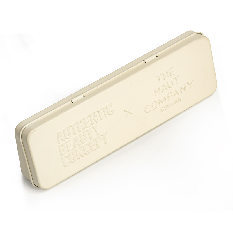 ◆ Печать: 4C (CMYK) офсетная печать, один цвет Pantone, белый лак и глянцевое покрытие для внешней стороны крышки; 4C (CMYK) офсетная печать, цвет Pantone и белый лак для внешней стороны корпуса; Серебряный лак для внешней стороны дна и внутренней части жестяной коробки.