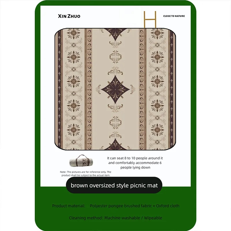 1 шт, увеличенный пикниковый коврик размером до 240*300 см, подходит для различных сценариев: кемпинг, пикник, пляж. Цельная упаковка для хранения, безопасно без формальдегида, тепло- и влагоизоляция, не прилипает песок и трава, мягкий, можно стирать в стиральной машине, серия "коричневый этнический стиль". Водоотталкивающая ткань из весенней тафты, влаго- и грязеотталкивающая, износостойкая, проста в уходе. Двойное оксфордское дно, влаго- и теплоизоляция. Ультразвуковое закрепление ваты, можно многократно стирать в стиральной машине, портативный и легко складывается, готов к использованию после раскрытия.