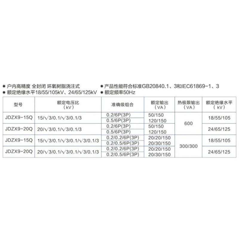 Характеристики изделия соответствуют стандартам GB20840.1, 3 и IEC61869-1, 3