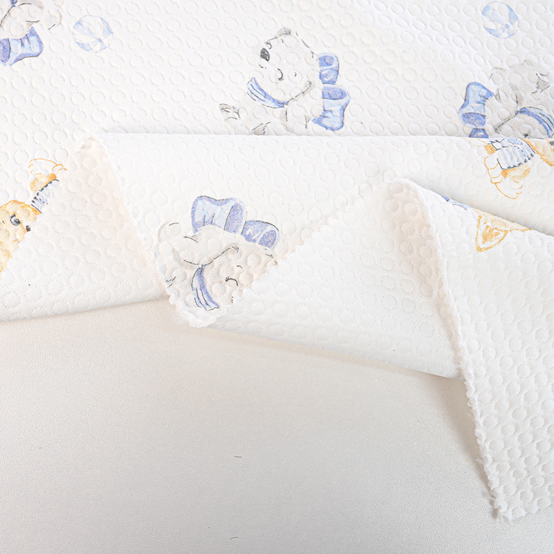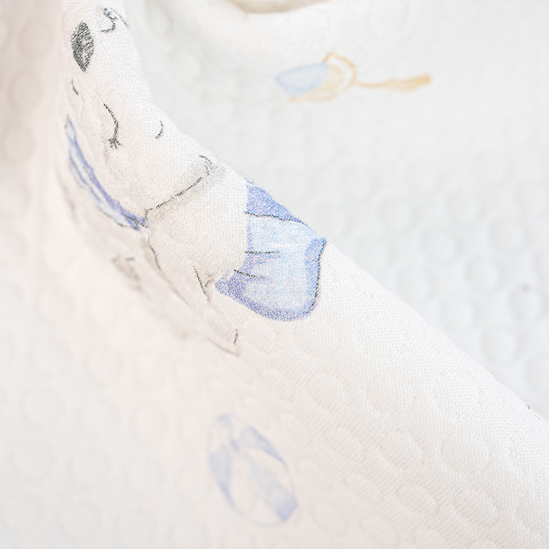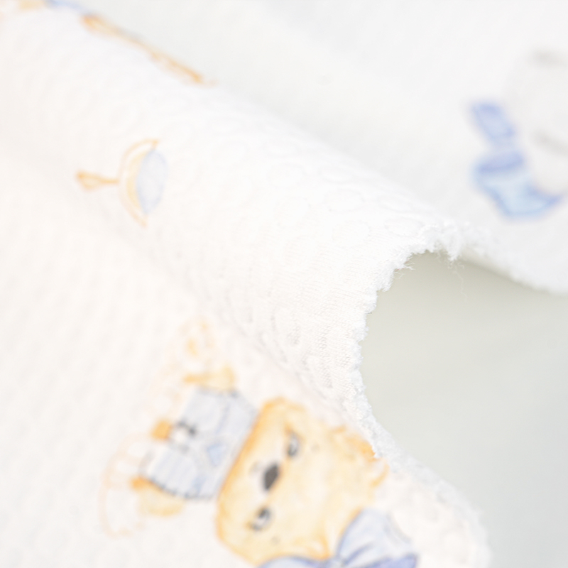 Это жаккардовая ткань с тремя слоями шелка шириной 185 см и весом 320 г/м2. Структура ткани и характеристики этой ткани таковы, что трехслойный шелк, воздух, хлопок состоит из двух слоев ткани со слоем пушистой пряжи-наполнителя (например, полиэстеровой низкоэластичной пряжи), зажатой между ними, чтобы сформировать воздушный сэндвич, который отлично сохраняет тепло и пропускает воздух. Смесь хлопка и полиэстера, сочетающая мягкость и приятность для кожи хлопка с износостойкостью и устойчивостью к складкам полиэстера, подходит для нижнего белья для младенцев и детей. Печатный рисунок четкий, нетоксичен и безопасен и соответствует стандартам для детских товаров. Стеганая трехслойная конструкция, стеганый жилет или стеганый трехслойный комбинезон, с использованием подкладки из чистого хлопка + промежуточной теплой пряжи, легкая и теплая, подходит для осени и зимы. Преимущества тканей с воздушным слоем: высокая пушистость, хорошая эластичность, возможность стирки и нелегкая деформация, подходят для детских изделий, которые часто стираются. Это ткань стандарта безопасности класса А.