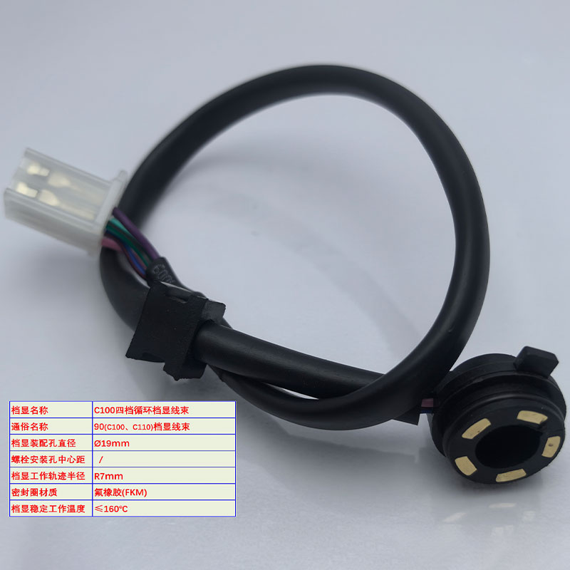 Кабель датчика индикатора скорости C100 - это специальный кабель, разработанный для системы индикации передач мотоциклов, который подходит для различных моделей серии C100. В изделии используется провод с медным сердечником с высокой проводимостью и термостойкой оболочкой из ПВХ, который обладает характеристиками стабильной проводимости, точного сигнала, износостойкости и защиты от старения. Жгут проводов надежно подсоединен и обладает высокой защитой от помех. Его можно легко подключить к оригинальной автомобильной системе индикации передач для обеспечения точного датчика индикатора скорости в режиме реального времени, что эффективно улучшает качество вождения и повышает его безопасность. Он широко используется на рынке послепродажного обслуживания мотоциклов и подбора транспортных средств, поддерживает индивидуальную настройку и удовлетворяет потребности в установке различных моделей.