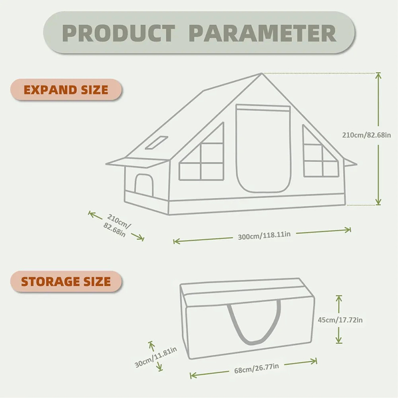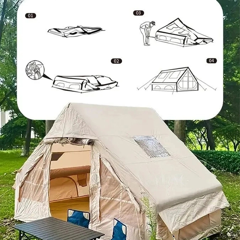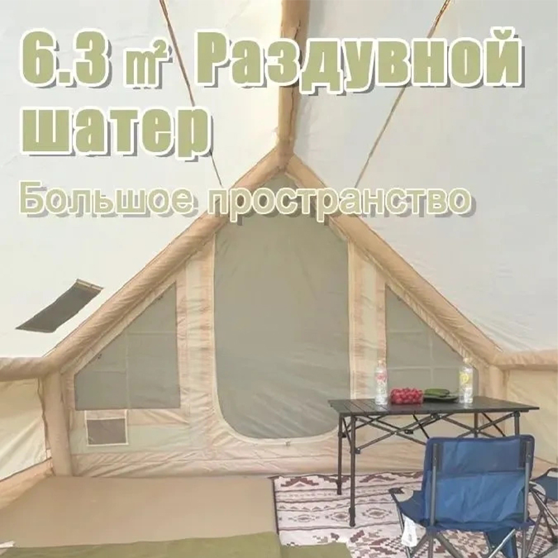 Эта инфляционная палатка площадью 6,3 м² представляет собой модель классического дизайна. Она имеет водонепроницаемый и усиленный дизайн, в комплект входят ветровые канаты, грунтовые гвозди и сумка для хранения. В летний период предусмотрен дизайн с москитными сетками (защищает от комаров), а зимой — шторы для защиты от ветра, что идеально соответствует вашим ожиданиям от кемпинга.